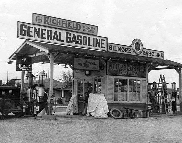 The gas station would never have existed without the automobile. These gas station photos depict the how the once vital part of the local community has changed over the years. The full service gas station or filling station made it possible for people to travel across country in their automobile. In only a few short years the auto industry was responsible for may other things drive the economy of the United States. From roads and highways to hotels and restaurants.
