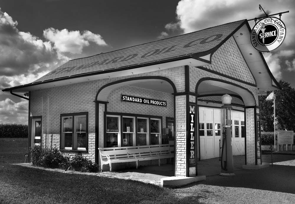 The filling station, garage with gas pumps or gas station was a small local family business that was often started by that local guy that could naturally fix anything. This jack of all trades could repair most problems with your vehicle and the bulk of the profits were made from service and repairs while pumping gas was a sideline that brought little more than pennies on the gallon. The gas station photos displayed below represent a business that has changed just as much as the automobile.
